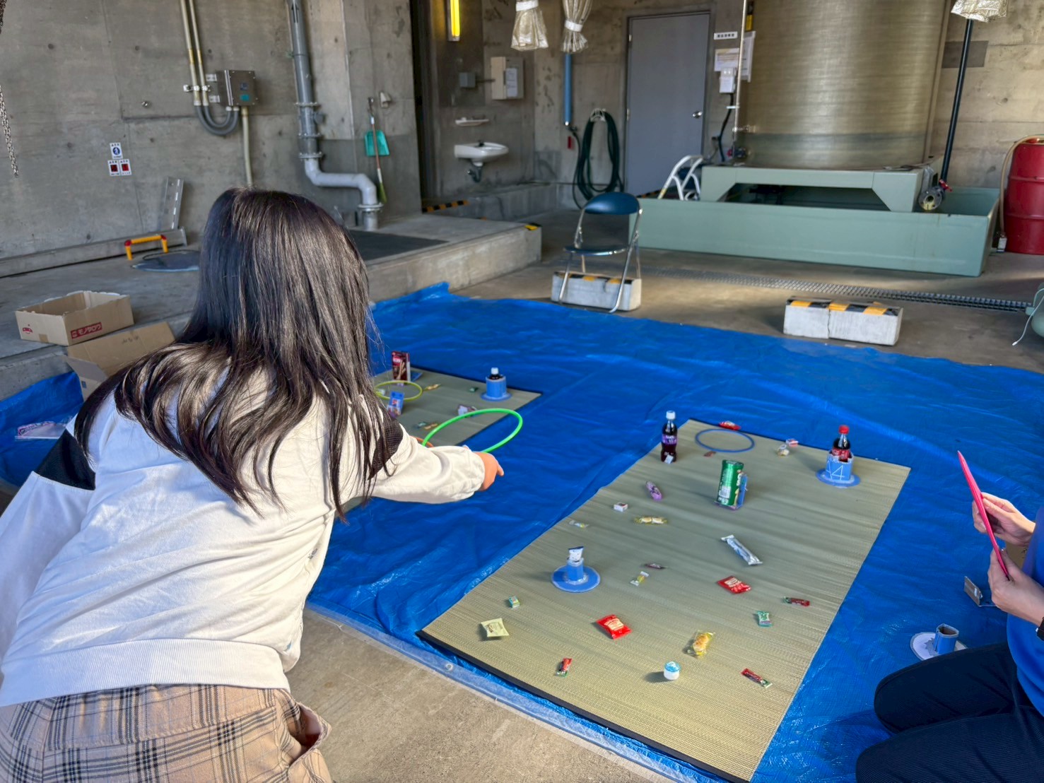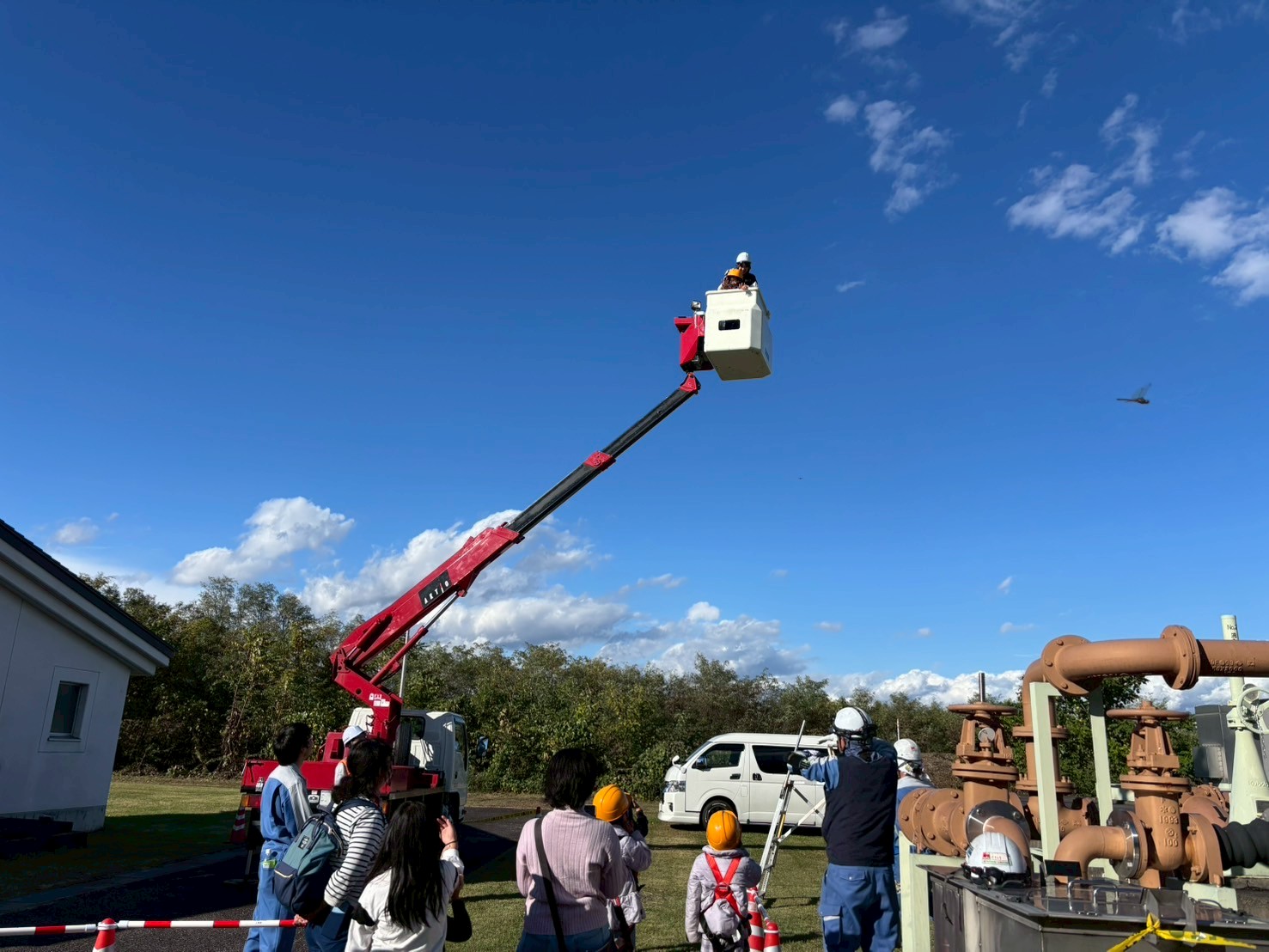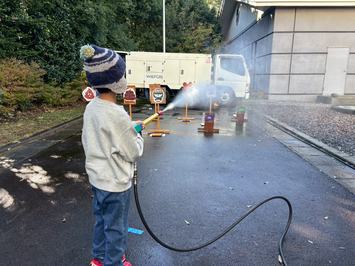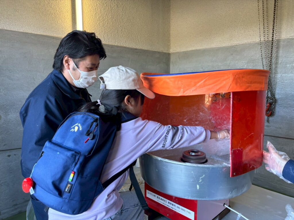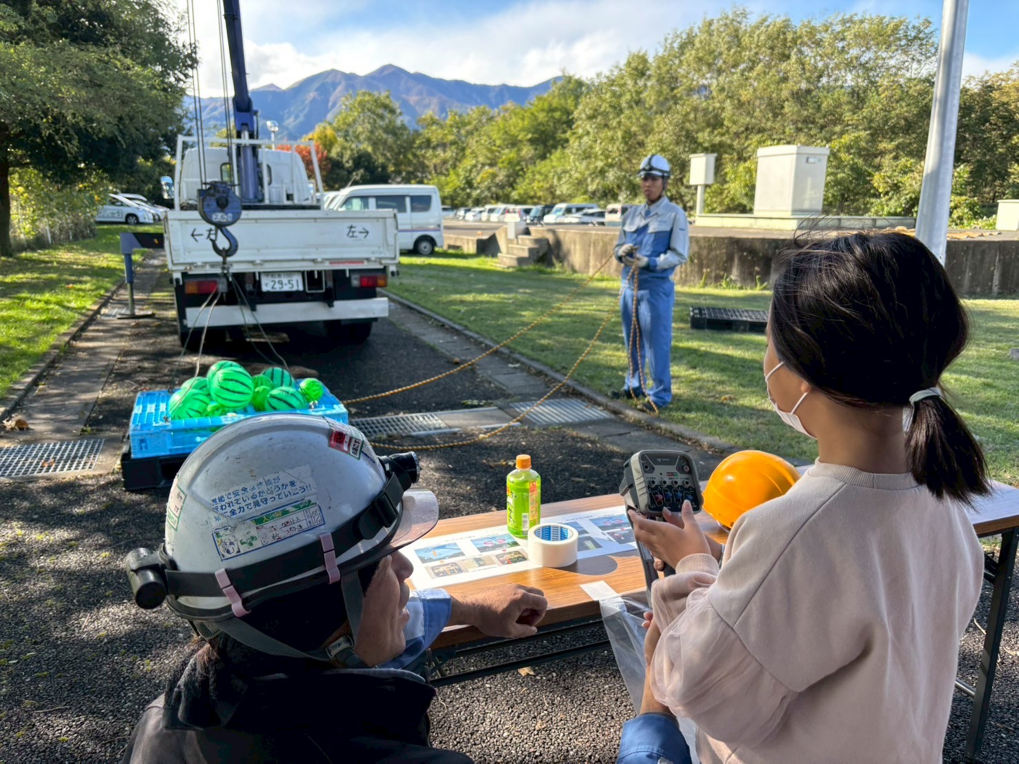 屋外エリアでは、「働く車」を使ったゲームコーナーや「高所作業車体験」、「わなげゲーム」などを催しました。